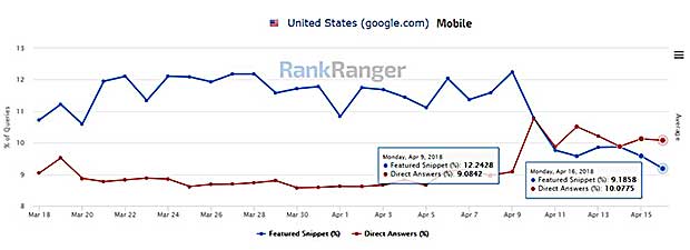 In Google mobile searches featured snippets have decreased while direct answers have increased, a trend that may be on the rise for some time to come.